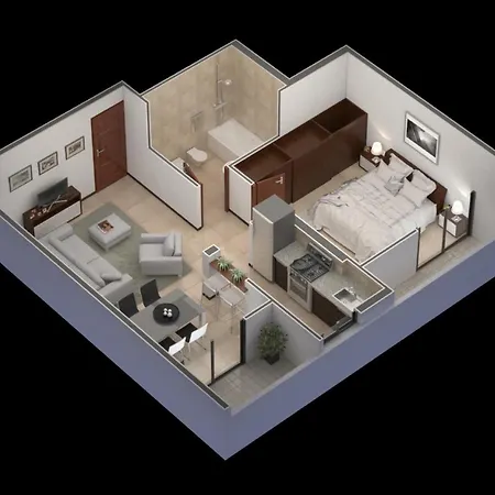 Ayrıca dairenin odalarında düz ekran televizyon, balkon mevcuttur. Bu dairede 2 kadar misafir kalabilmektedir. Dairede banyo küveti, duş, bide ile bir banyo odası vardır.